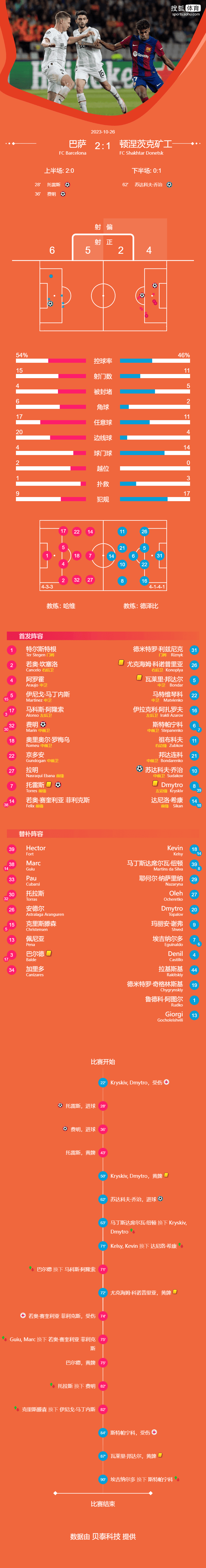开云体育:北京时间10月26日,欧冠小组赛H组第三轮比赛拉开帷幕,巴塞罗那在主场迎战顿涅茨克矿工。在第28分钟,费兰-托雷斯在门前抢射得手,为巴萨打破僵局。第36分钟,费兰成功助攻小将费尔明,扩大了比分。然而,第62分钟,矿工的苏达科夫完成一记进球,将比分缩小。不幸的是,第74分钟,巴萨的菲利克斯受伤离场。最终,巴萨以2-1的比分战胜对手,赢得小组赛的第三场胜利,积累了9分,稳坐小组榜首。